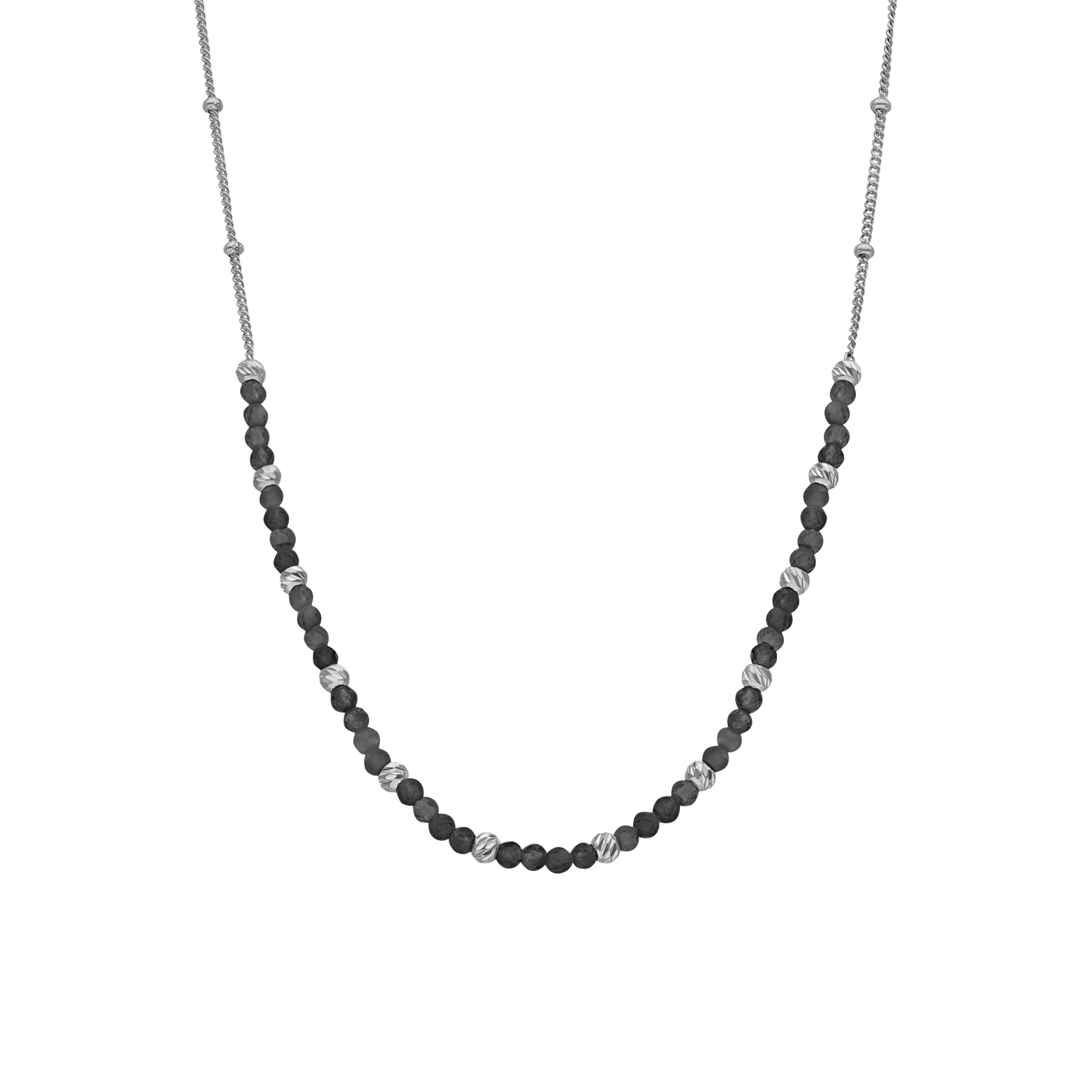 Collier argent rhodié perles rhodié et pierres spinelle noire : un bijou élégant et raffiné