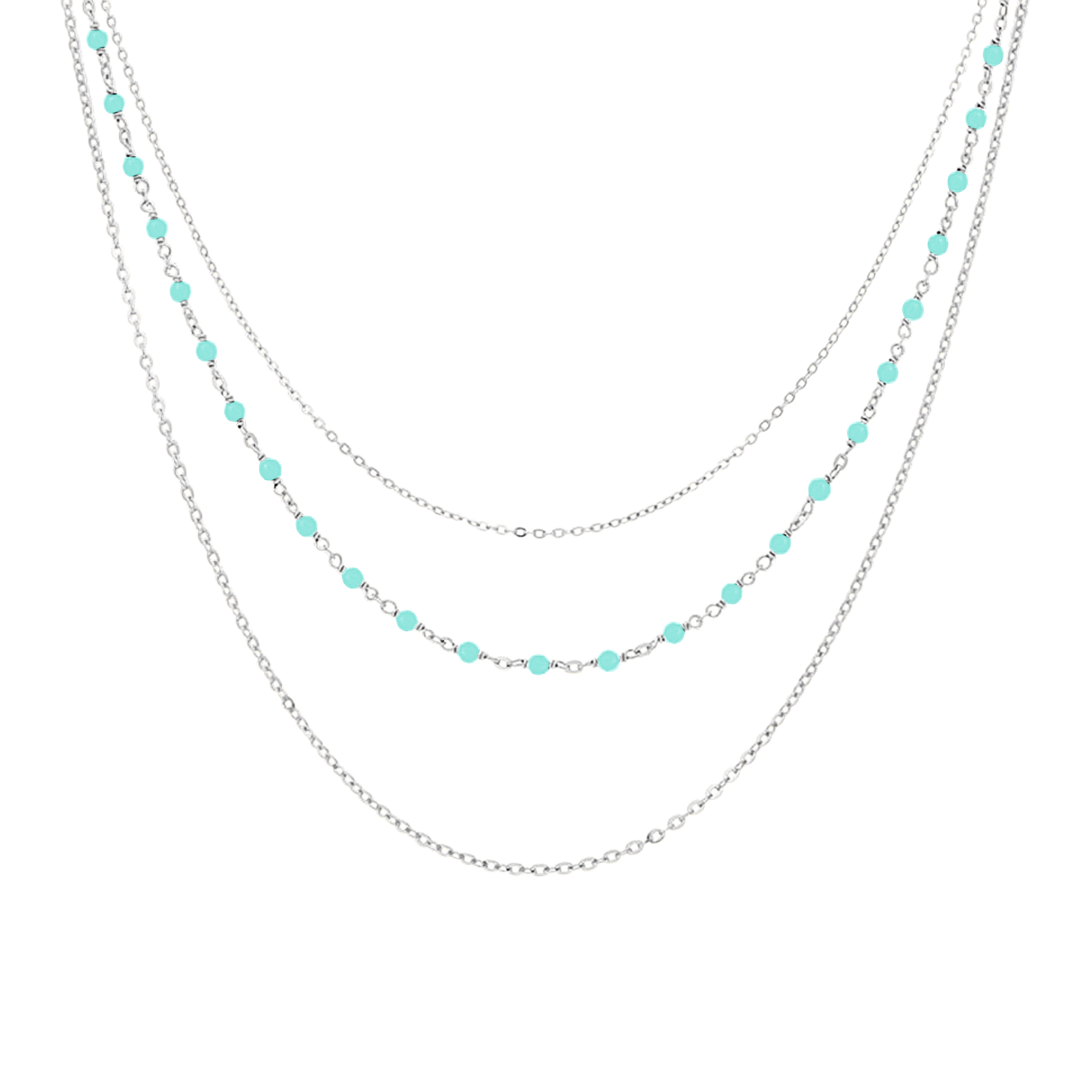 Le collier argent rhodié triple collier petite perles pierre amazonite de la Collection Colors est un bijou d’une élégance incomparable. Sa pierre amazonite d’un bleu lumineux apporte une touche de couleur subtile et raffinée à votre tenue. Fabriqué en argent 925/1000, ce collier est à la fois intemporel et moderne, parfait pour toutes les occasions.