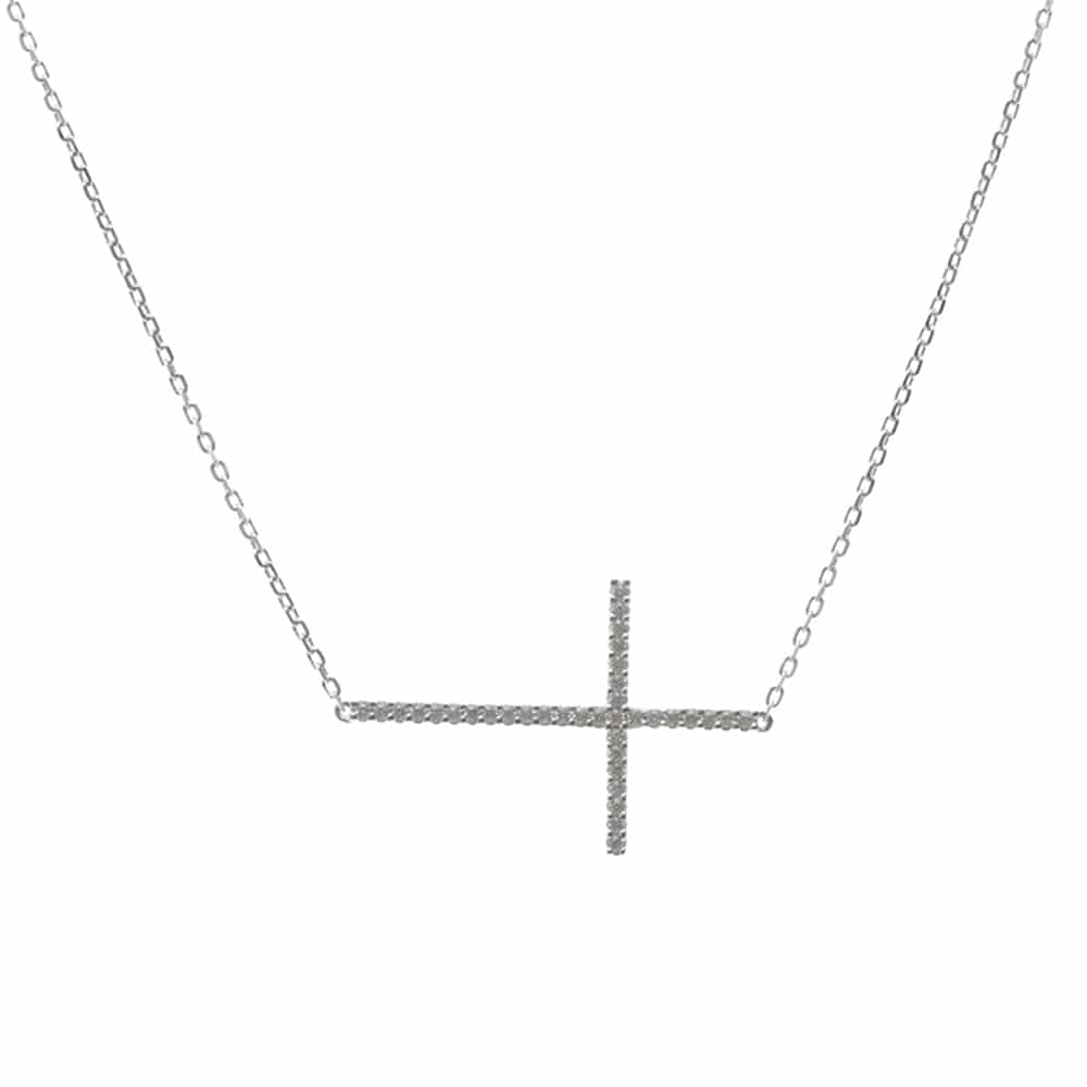 Description du Collier argent rhodié croix horizontale