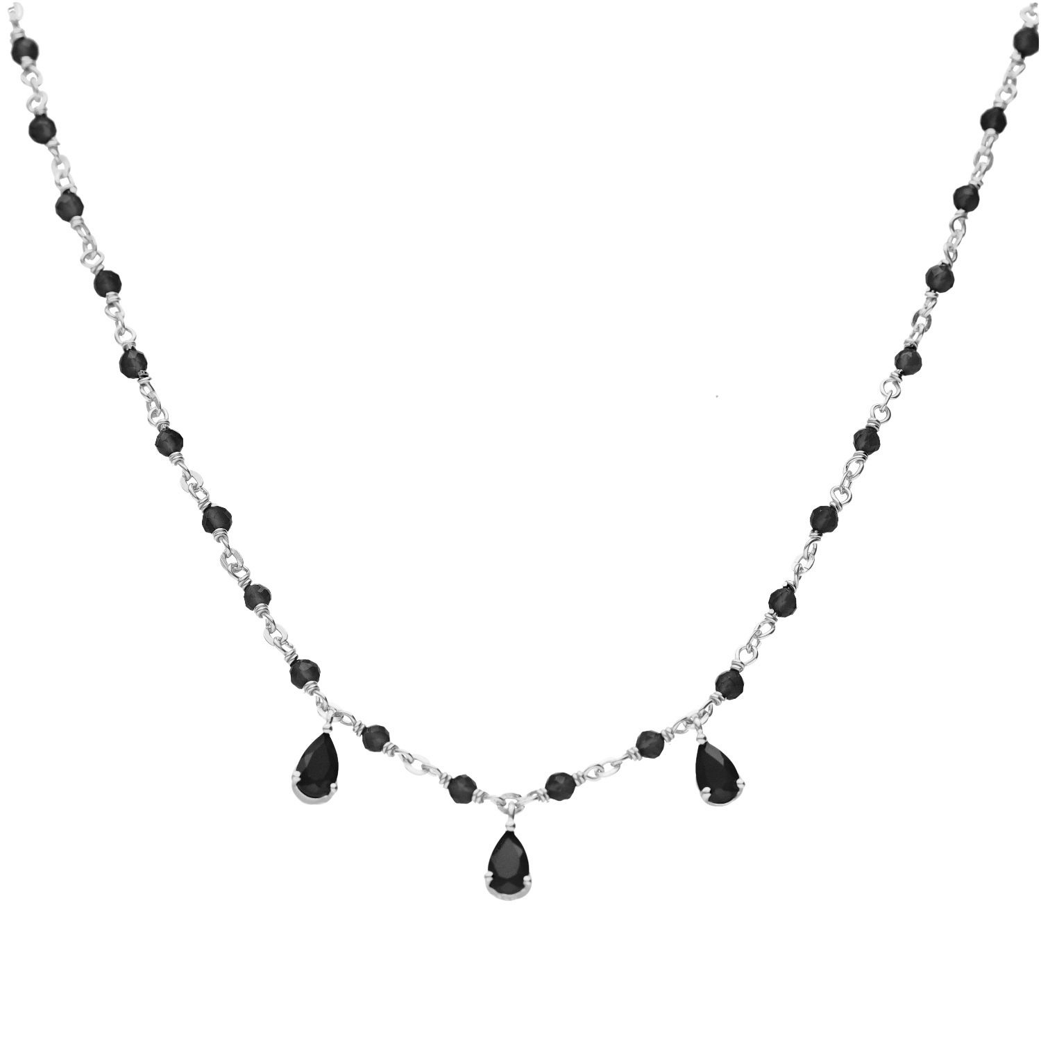 Un collier argent rhodié et pierres naturelles noires d’une élégance intemporelle