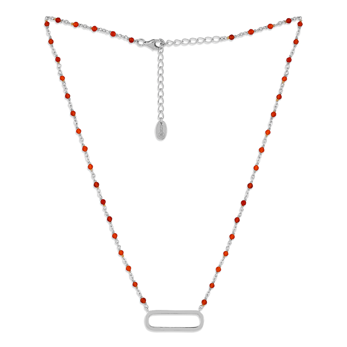 Collier argent rhodier lingot et pierres onyx naturelles rouge