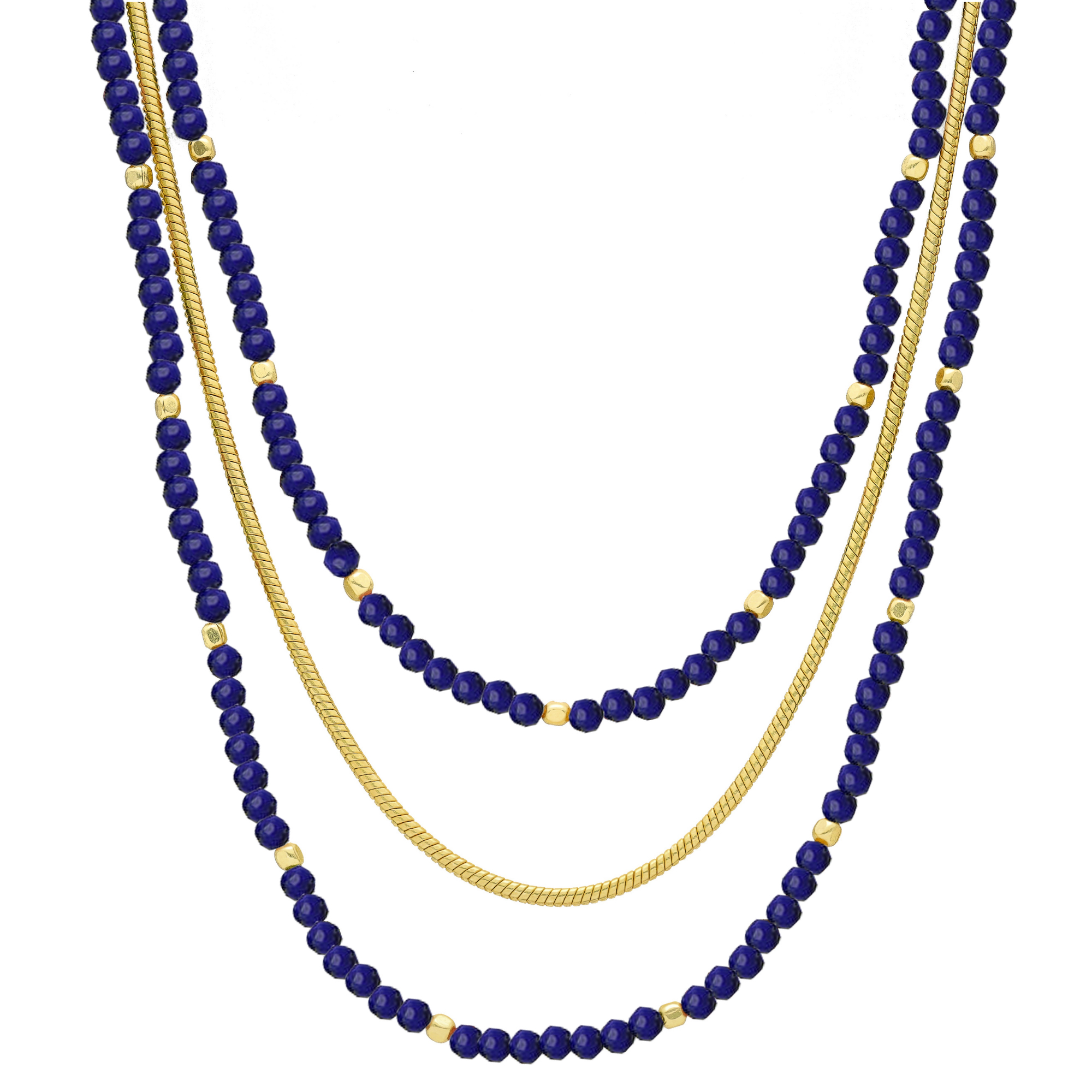 Collier argent triples chaines doré et perles Lapis Lazuli