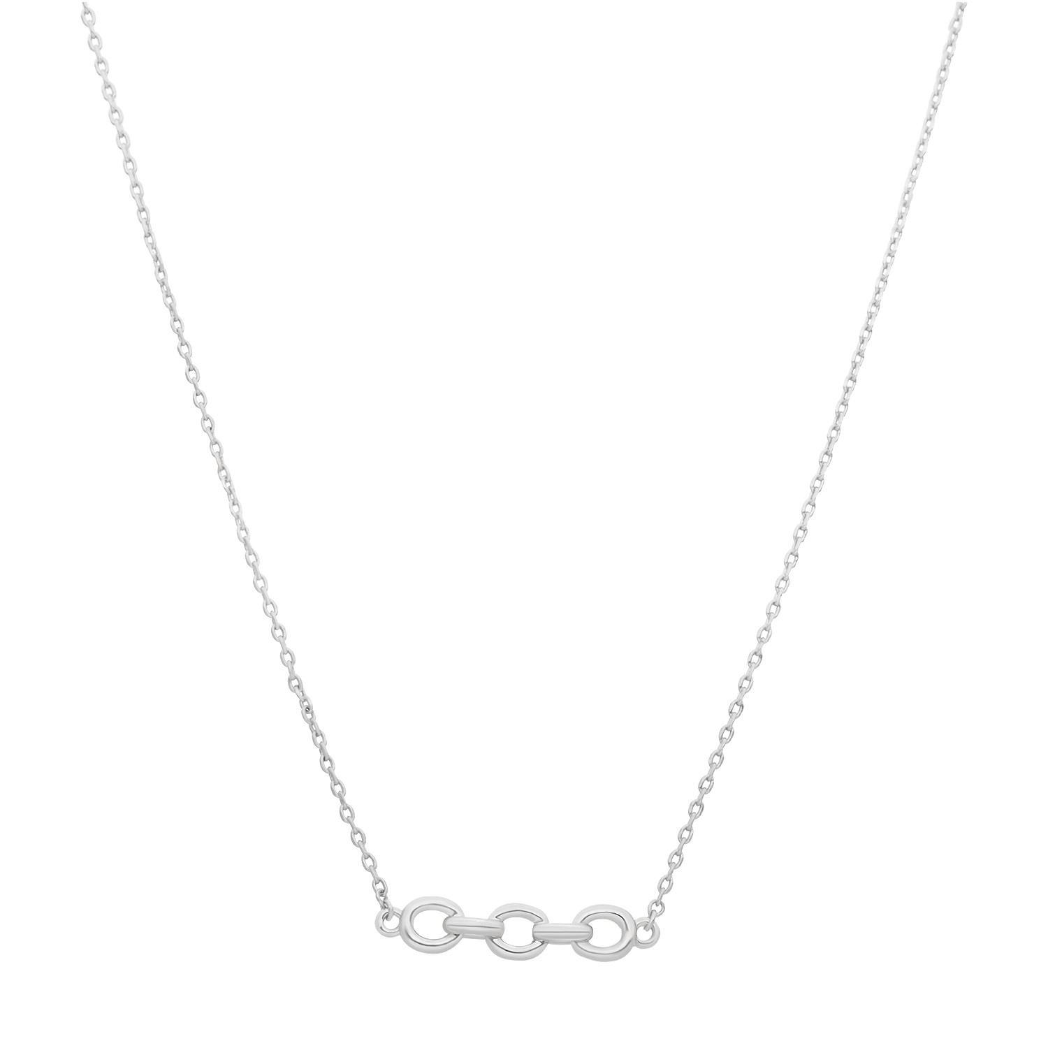 Ce collier en chaine en laiton argenté est un accessoire élégant et intemporel. La pièce principale est composée de 3 grosse maille qui lui donnent un look rétro et vintage. Le collier est de couleur argenté, ce qui lui donne une apparence brillante et raffinée. Le collier est parfait pour ajouter une touche de sophistication à n’importe quelle tenue, et sera un choix idéal pour ceux qui cherchent un bijou élégant et intemporel. Ce collier sera le complément parfait pour une tenue de soirée ou pour un look plus décontracté. Il est également idéal pour tous les jours avec un t-shirt blanc simple. Il attirera sans aucun doute les regards et vous fera vous sentir spéciale.