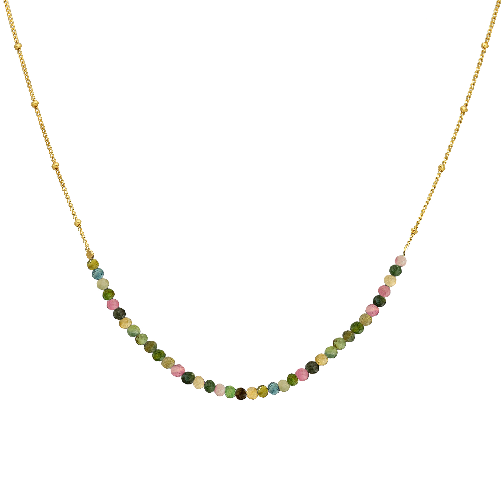 Les perles de tourmaline de ce collier arborent des couleurs multiples et chatoyantes, apportant une touche de fantaisie et de gaieté à votre look. Chaque pierre naturelle est unique et possède des propriétés énergétiques bénéfiques pour celui ou celle qui la porte. En plus d’être un accessoire de mode tendance, ce collier vous permettra de bénéficier des vertus apaisantes et protectrices de la tourmaline.