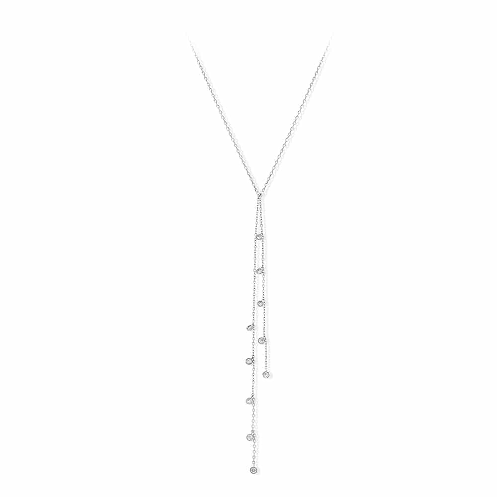 Description du Collier Cravate Argent Perles Blanches Zirconium