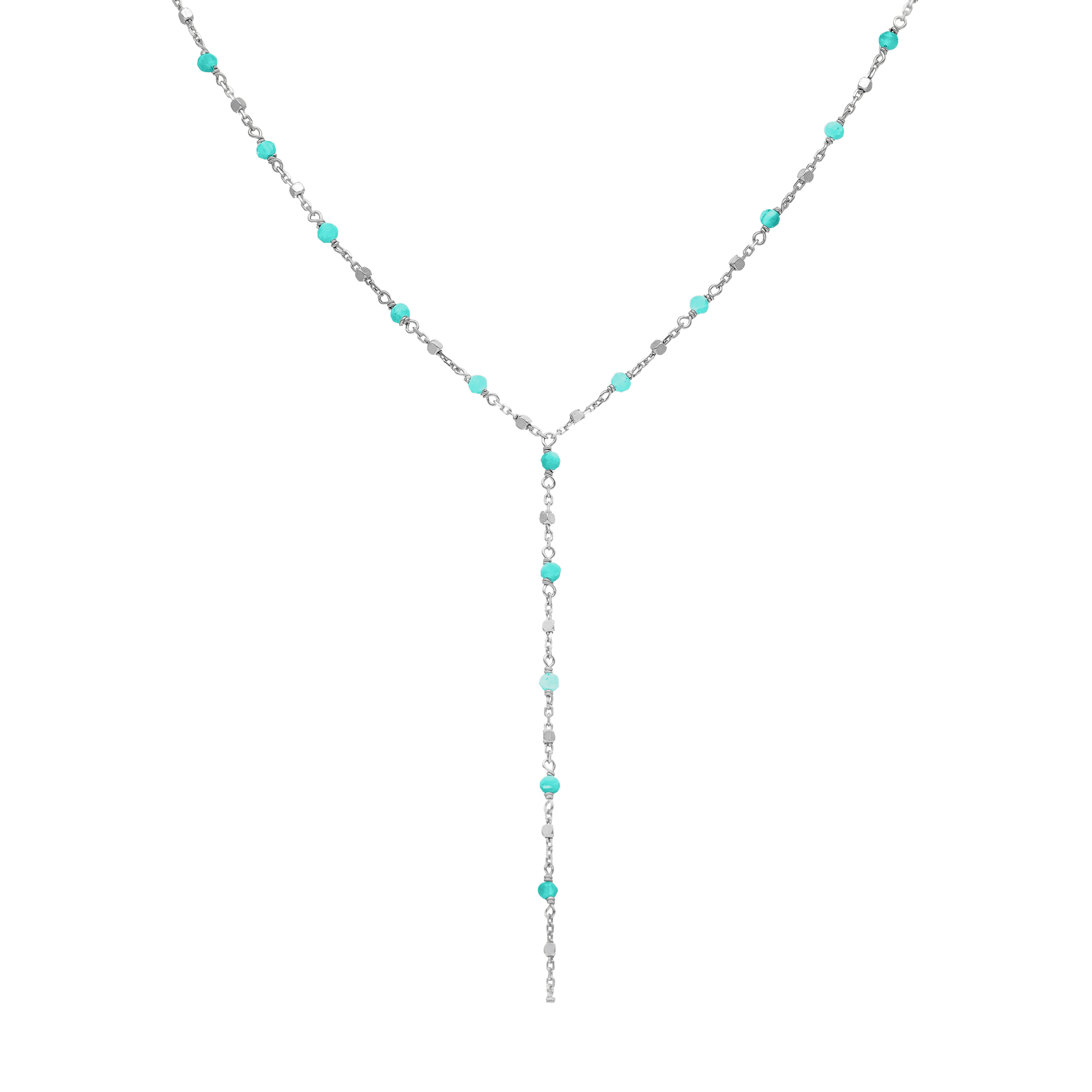 Ce collier cravate est le compagnon idéal pour toutes les occasions. Que ce soit pour une soirée chic ou pour une journée décontractée, il saura mettre en valeur votre féminité et votre style unique. Sa couleur argentée et sa pierre amazonite en font un accessoire polyvalent et intemporel, à porter avec fierté au quotidien.