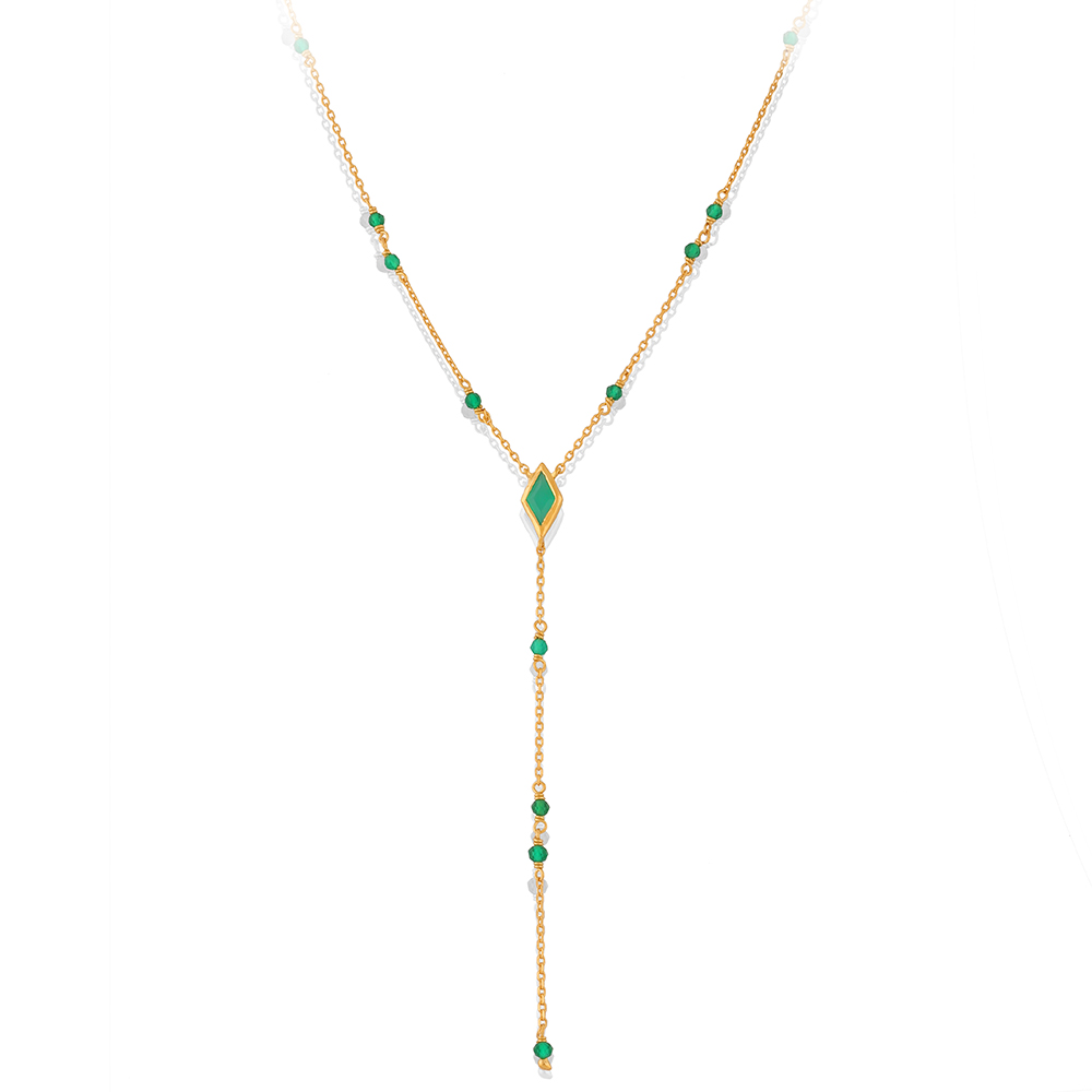 Le collier argent doré avec pierre onyx naturelle verte vous donnera un style bohème chic, à la fois sur un ton de couleur très affirmé relevé par un argent recouvert d’une fine couche d’or 18 carats. Grace à sa chaine ajustable, sa taille réglable facilitera votre choix si c’est pour un cadeau ou si vous souhaitez le porter plus amples.