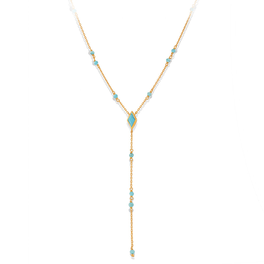 Offrez ce collier en argent cravate doré avec une pierre turquoise à une personne spéciale dans votre vie et montrez-lui à quel point elle compte pour vous. Que ce soit pour un anniversaire, une fête des mères ou simplement pour lui dire