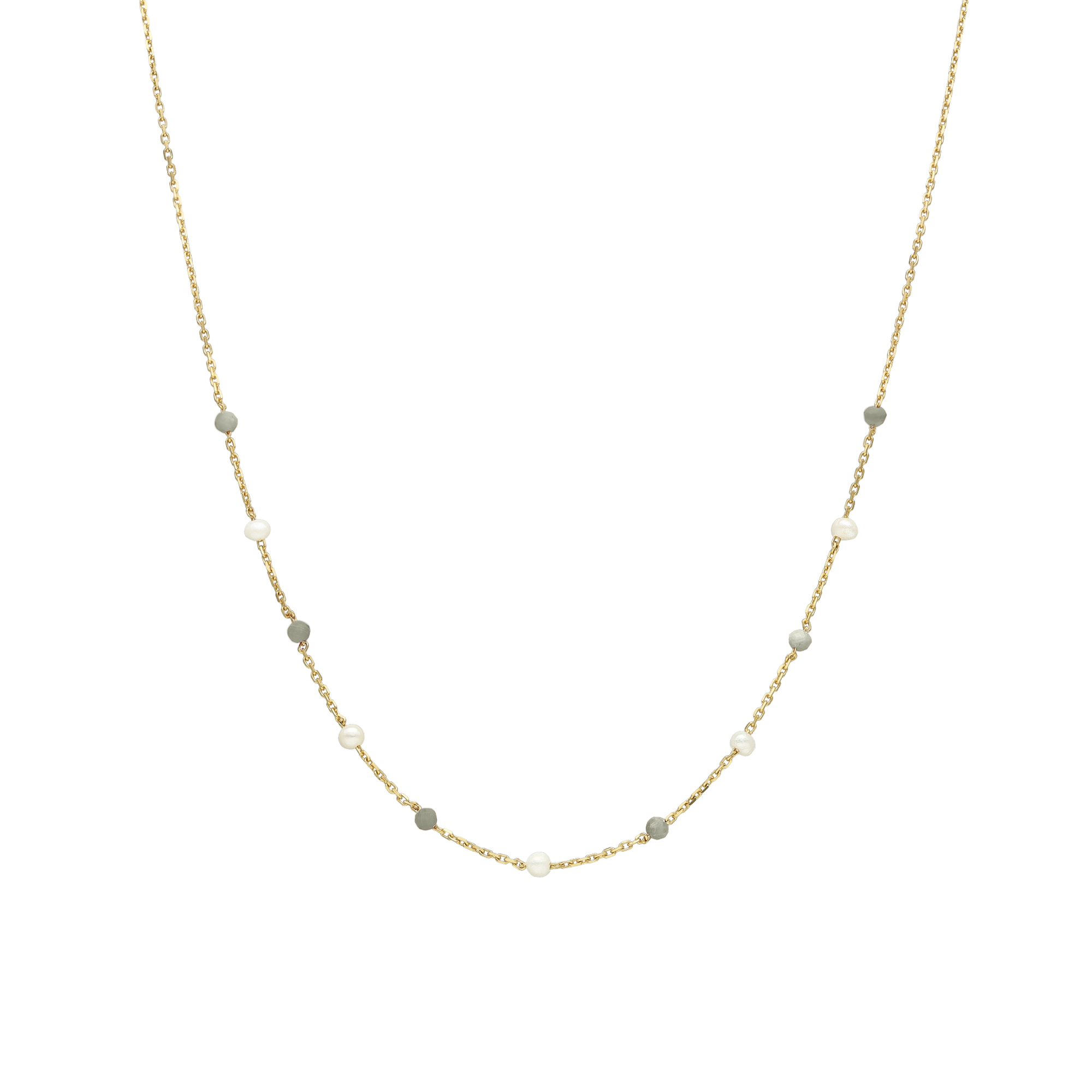 Ce collier en argent doré est le parfait équilibre entre mystère et sophistication. La labradorite, pierre protectrice aux reflets changeants, vous accompagnera tout au long de la journée en vous apportant équilibre et harmonie. Les perles naturelles blanches, symboles de pureté et d’innocence, viennent compléter ce bijou d’une rare beauté. Offrez-vous ce collier pour ajouter une touche de mystère et de sophistication à votre style, et laissez-vous envoûter par sa beauté intemporelle.