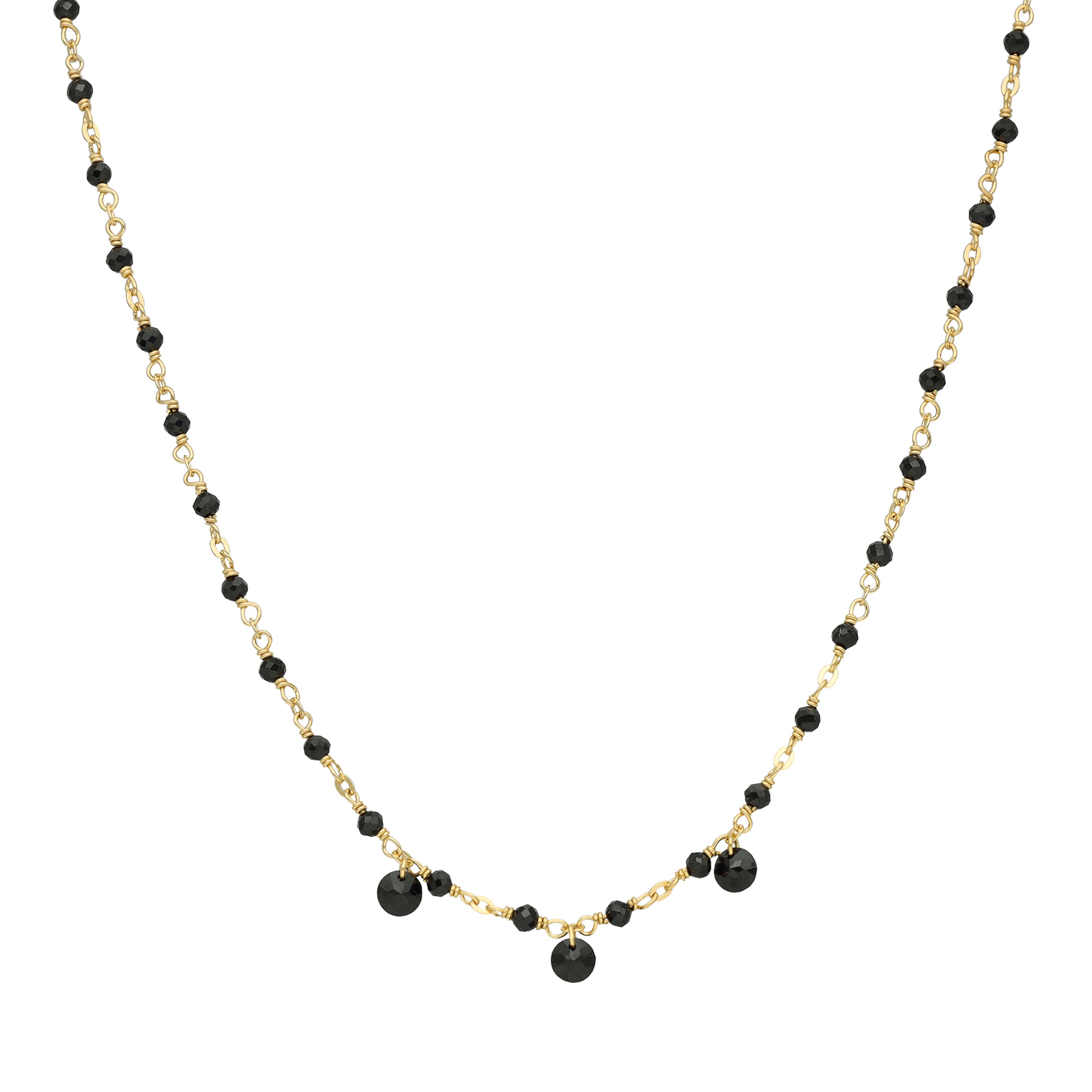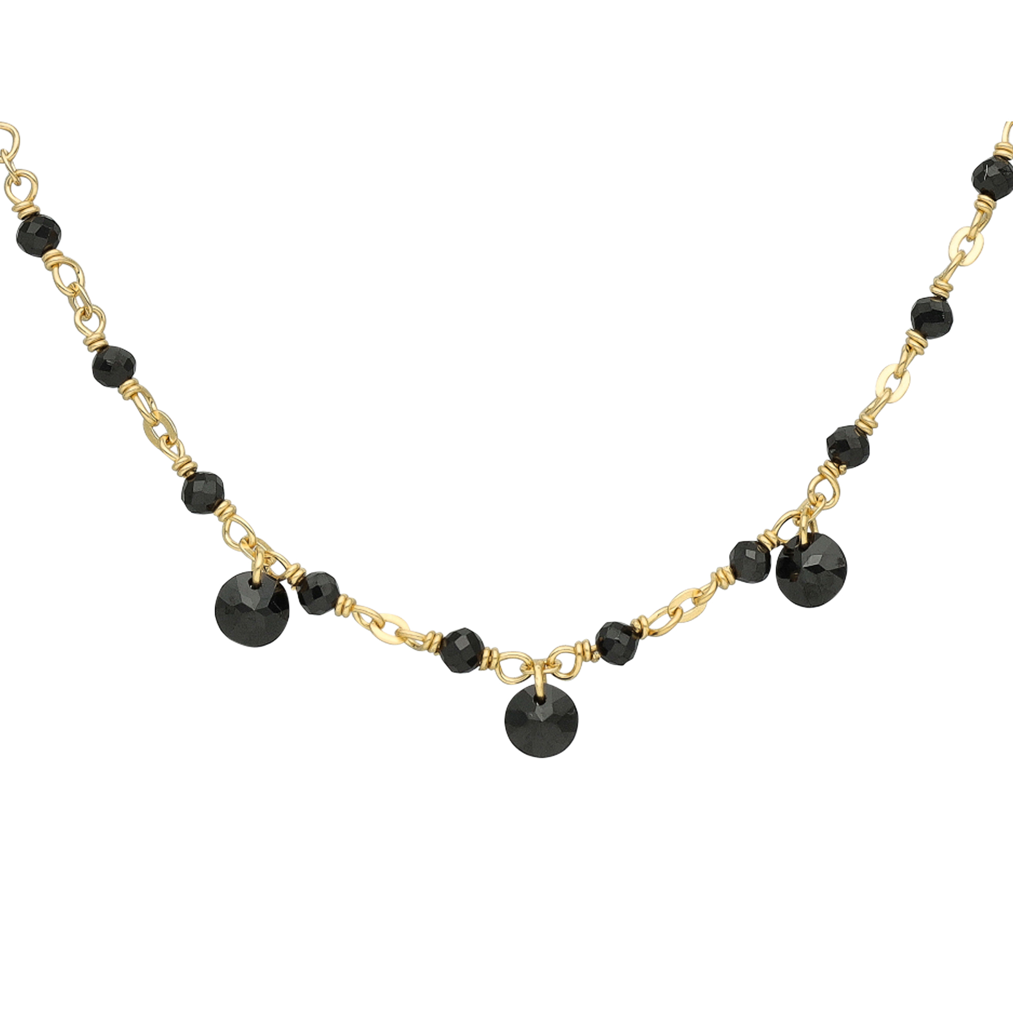 Description du Collier en argent doré pierres naturelles spinelle noir pampilles spinelle noir