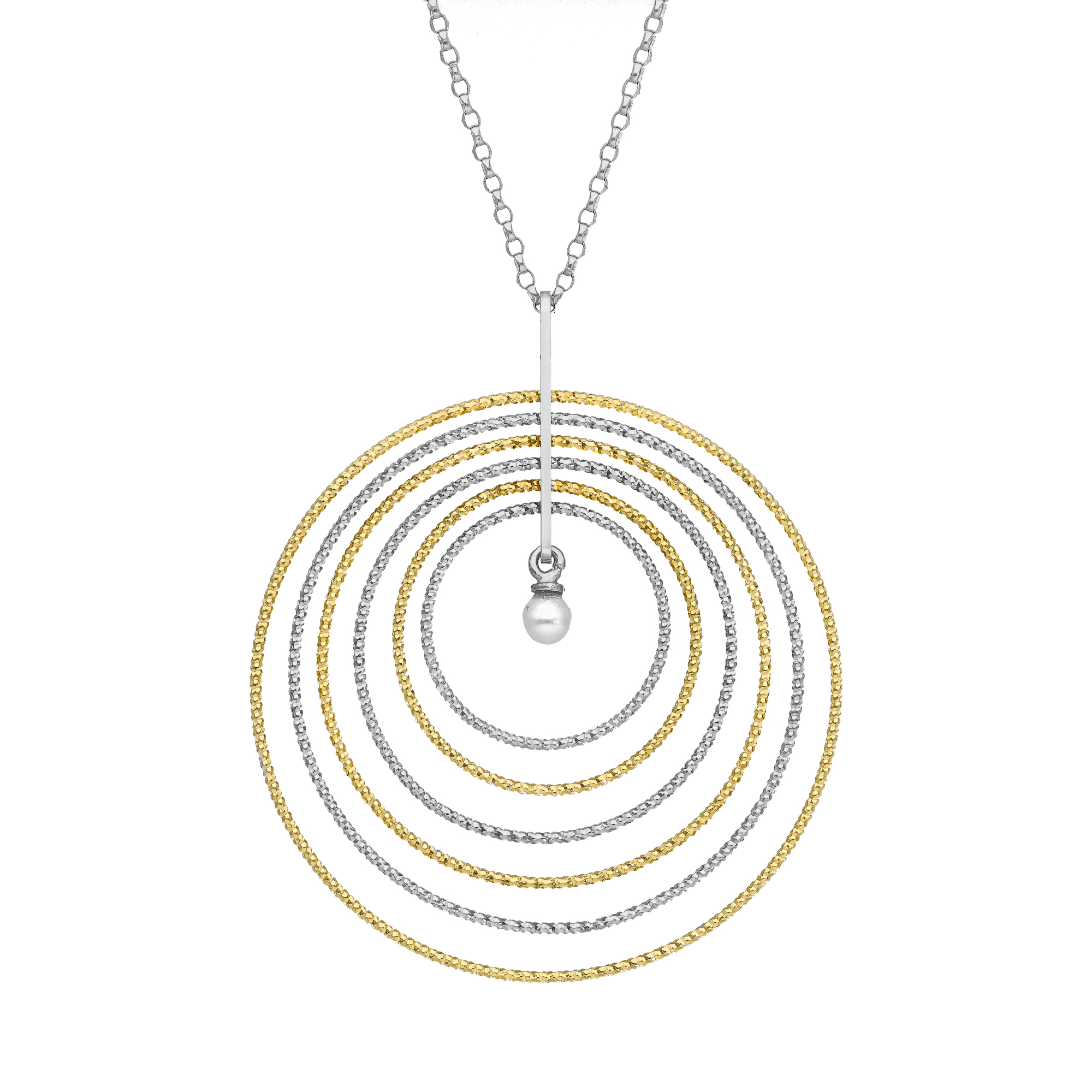 Collier en argent doré bicolore multi rond avec perle