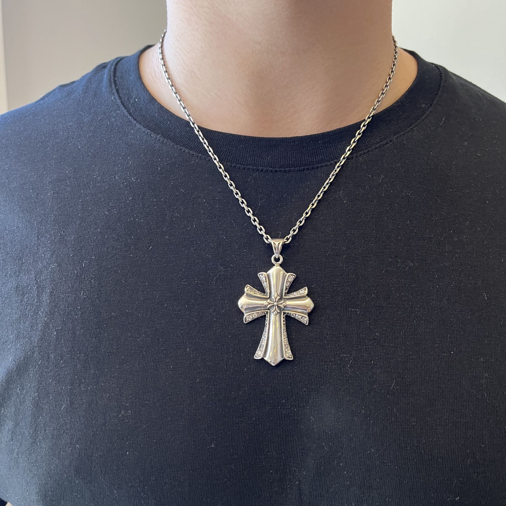 Ce collier pour homme est un accessoire tendance qui se marie parfaitement avec tous types de tenues, que ce soit pour une soirée rock entre amis ou pour un look plus décontracté au quotidien. Sa couleur argentée apporte une touche de brillance à votre style, et sa grande croix attirera tous les regards.