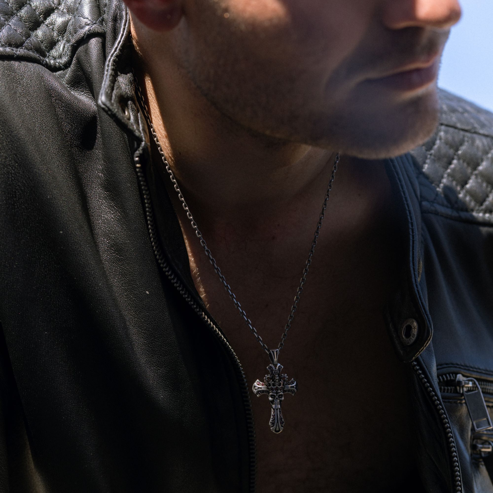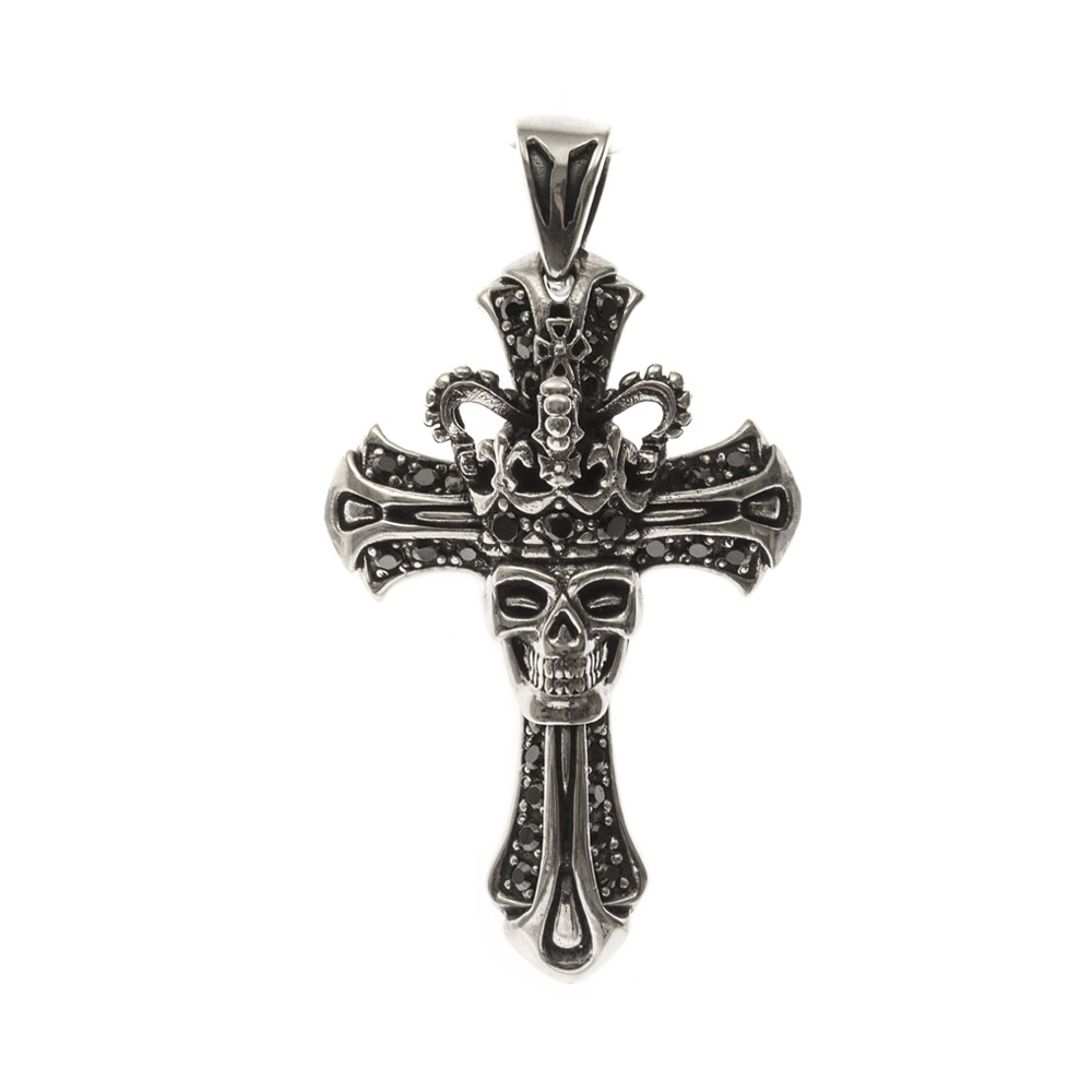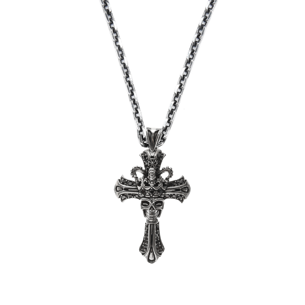 Pourquoi choisir le Collier homme croix royale tête de mort argent pierre noir?