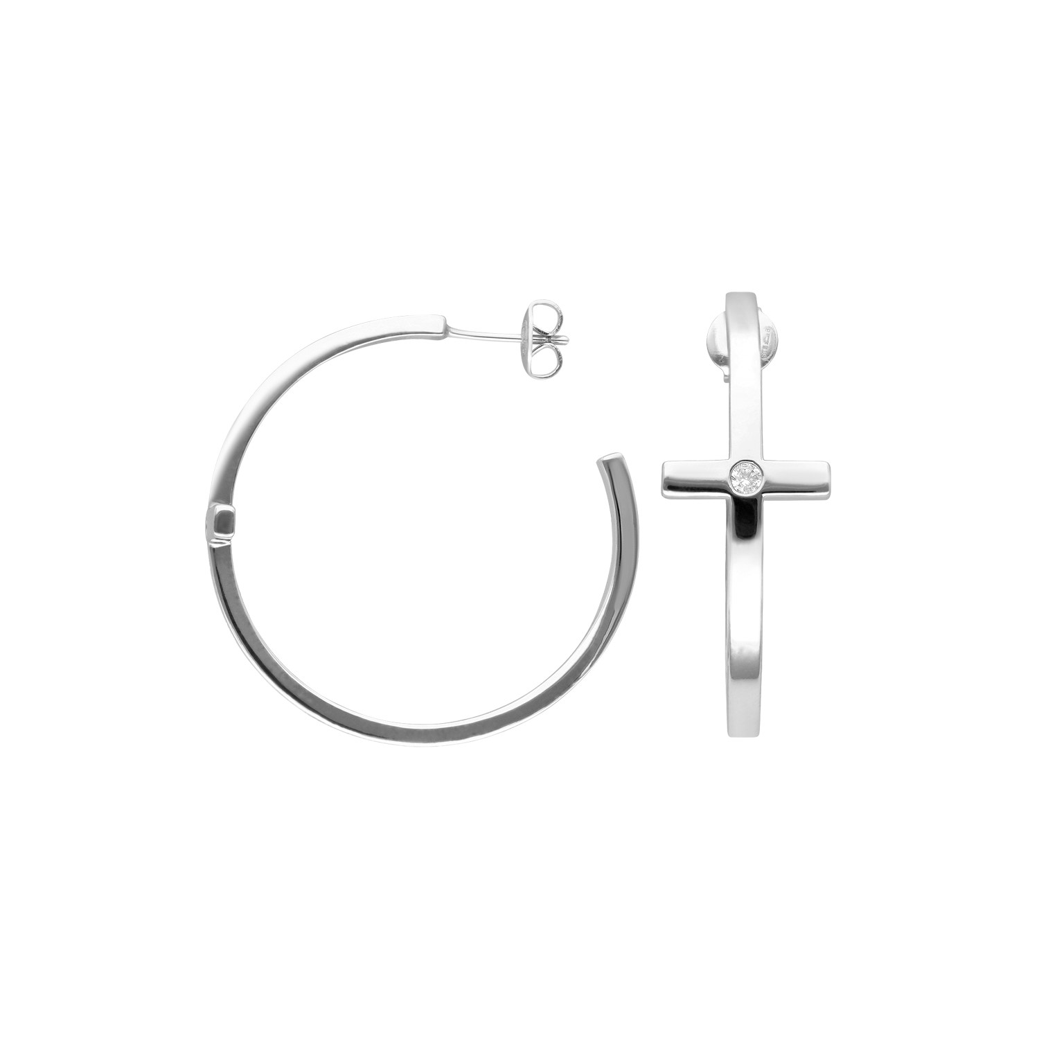 Créoles croix serties argentées