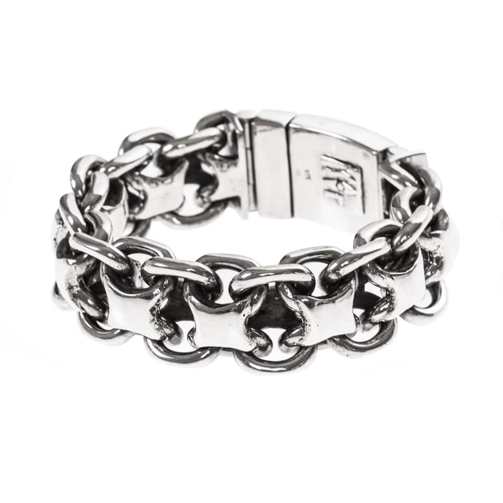 Avec la gourmette homme bracelet argent rock grand modèle, adoptez un style unique et tendance qui ne passera pas inaperçu. Son design original et audacieux en fait un accessoire parfait pour affirmer votre personnalité et votre goût pour la mode. Fabriqué en argent 925/1000 de haute qualité, ce bracelet allie robustesse et élégance pour un look résolument rock.