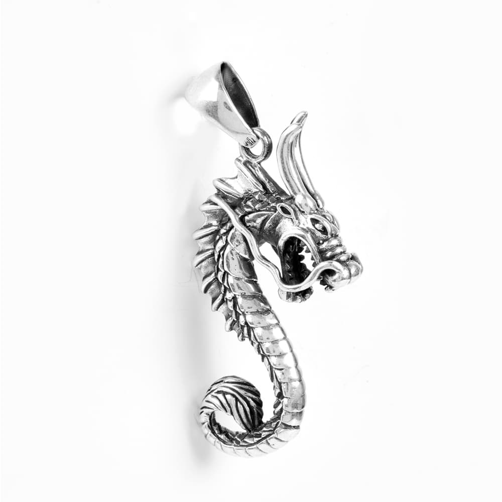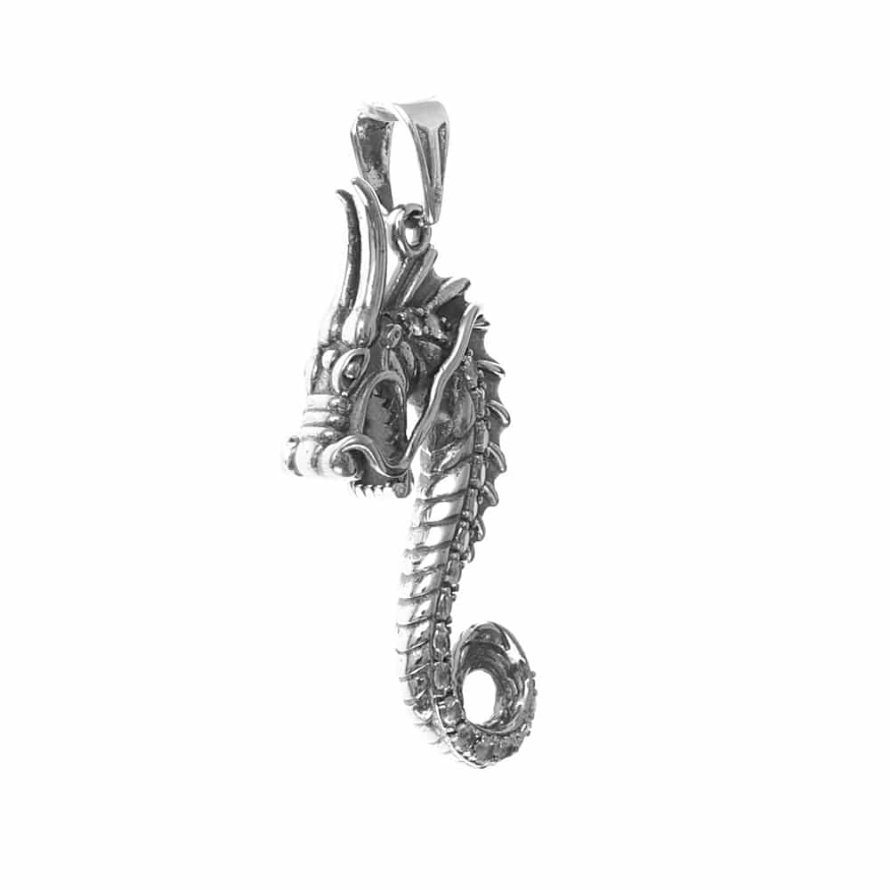 Vous aimez le monde fantastique, si la réponse est oui. Alors ce pendentif argent au motif dragon ornées de pierres zirconium de couleur blanche.